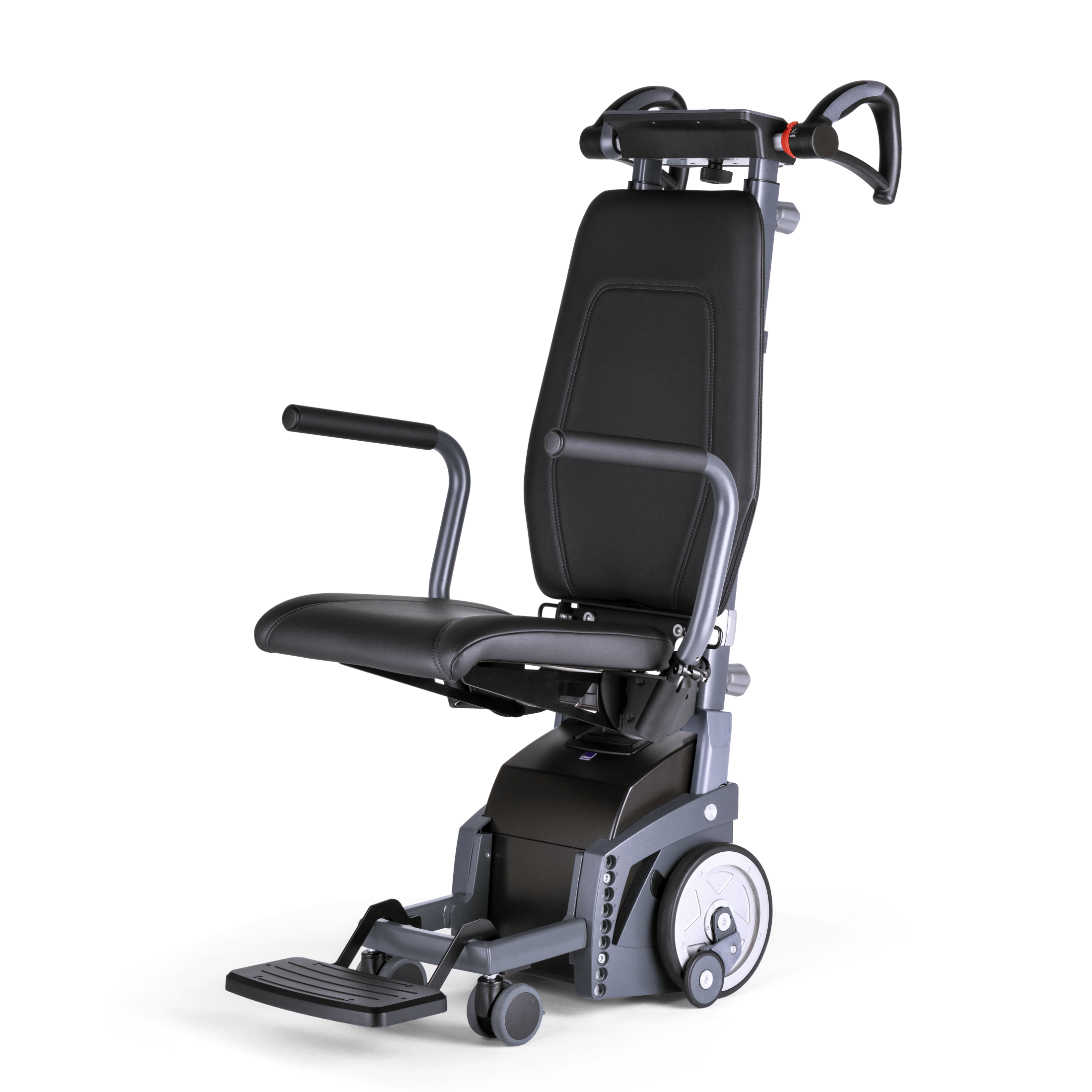 Le Scalacombi S46 est idéal pour les personnes nécessitant une assistance pour monter les escaliers, mais qui ne dépendent pas d'un fauteuil roulant au quotidien. Son système de montée est composé de deux paires de roues à entraînement électrique qui montent les escaliers en continu, une marche après l'autre.